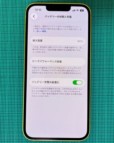 | 対象のiPhone | iPhone14、128GB、イエロー、ランクB |