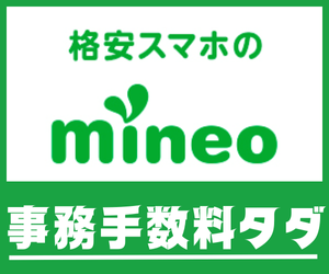 新プランでお得になったmineoの事務手数料3,300円が無料になる紹介URLです