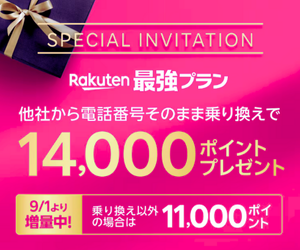 楽天モバイルへMNP乗換え14000P、新規契約11,000P還元ありの限定キャンペーン